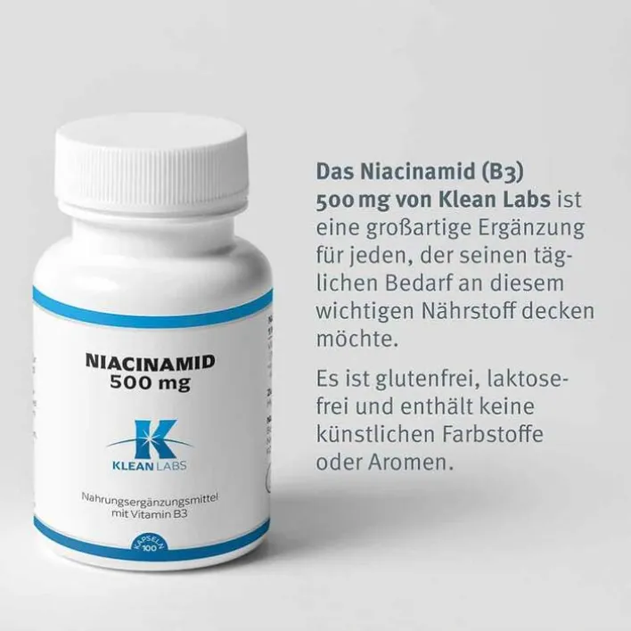 Klean Labs Niacinamid B3 500 mg Kapseln, 100 St> Vitamin B3 (Niacin)