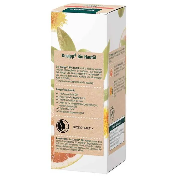 Das Kneipp® Bio Hautöl ist eine intensiv regenerierende Spezialpfl ege bei Narben und Dehnungsstreifen. Durch die wertvollen Öle wird das Hautbild verbessert und reife sowie trockene und strapazierte Haut reichhaltig versorgt.