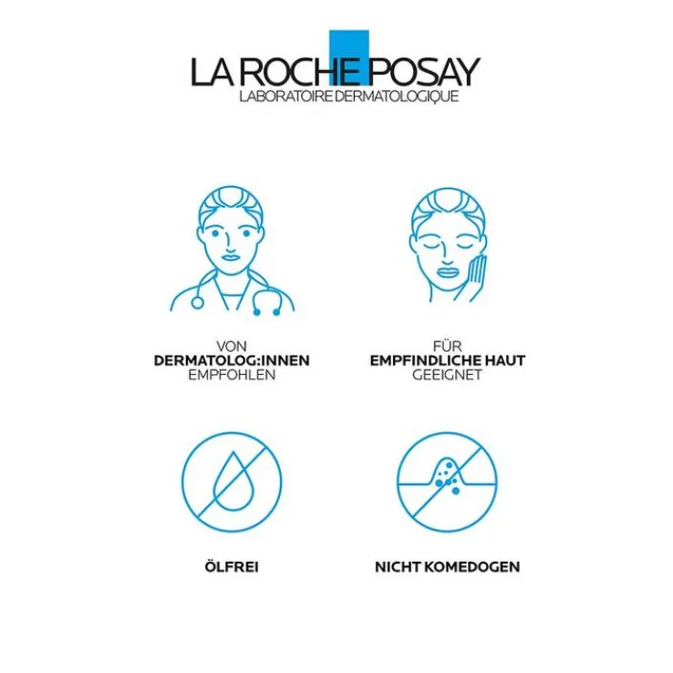 Für die vorherige Gesichtsreinigung eignet sich z. B. Effaclar schäumendes Reinigungsgel optimal. Eine haselnussgroße Menge der Gesichtscreme mit sanften, leicht streichenden Bewegungen auf Stirn und Gesicht einmassieren und die Augenpartie dabei aussparen.