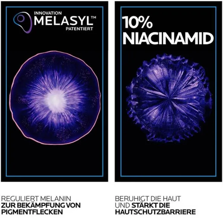 - Anti-Pigmentflecken-Serum mit patentiertem Melasyl und 10 % Niacinamid