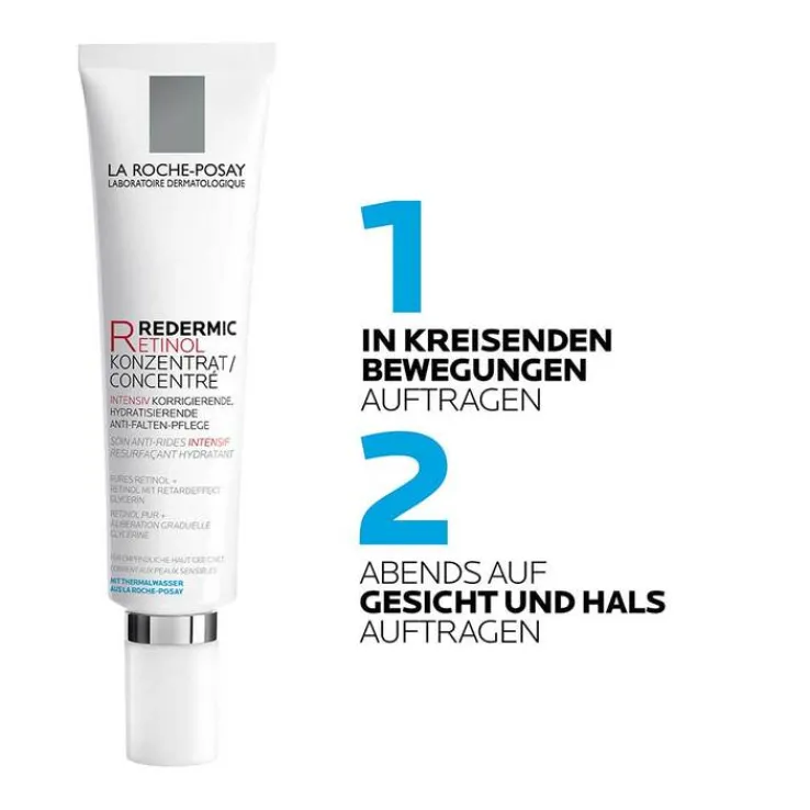 Tragen Sie das Redermic Retinol Anti-Falten-Konzentratvon La Roche-Posay abends auf Gesicht, Hals und Dekollete auf und meiden Sie die Augenpartie. Bei Gebrauch übermäßigen Augenkontakt vermeiden und einen Sonnenschutz mit mindestens einem LSF 50 verwenden. Nicht mit Retinol-haltigen Produkten kombinieren.