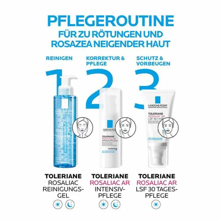 Das Reinigungsgel Toleriane Rosaliac täglich morgens und/oder abends anwenden. Dazu den Gesichtsreiniger mit einem Wattepad oder mit den Fingerspitzen auf die Haut von Gesicht, Hals und Dekollete auftragen. Mit kreisenden Bewegungen das Reinigungsgel verteilen und mit dem Wattepad vorsichtig abwischen. Ein weiteres Abspülen mit Wasser ist nicht notwendig.