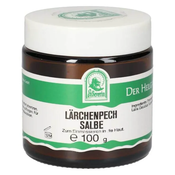 St. Severin Lärchenpechsalbe ist ein Naturprodukt aus dem Harz der heimischen Lärche und Terpentinöl, die in eine Wollwachsalkoholsalbe als Grundlage eingearbeitet sind. Sie kann zur Pflege überbeanspruchter und extrem strapazierter Haut verwendet werden. Die Salbe macht die Haut weich und geschmeidig und kann die Hautdurchblutung anregen.