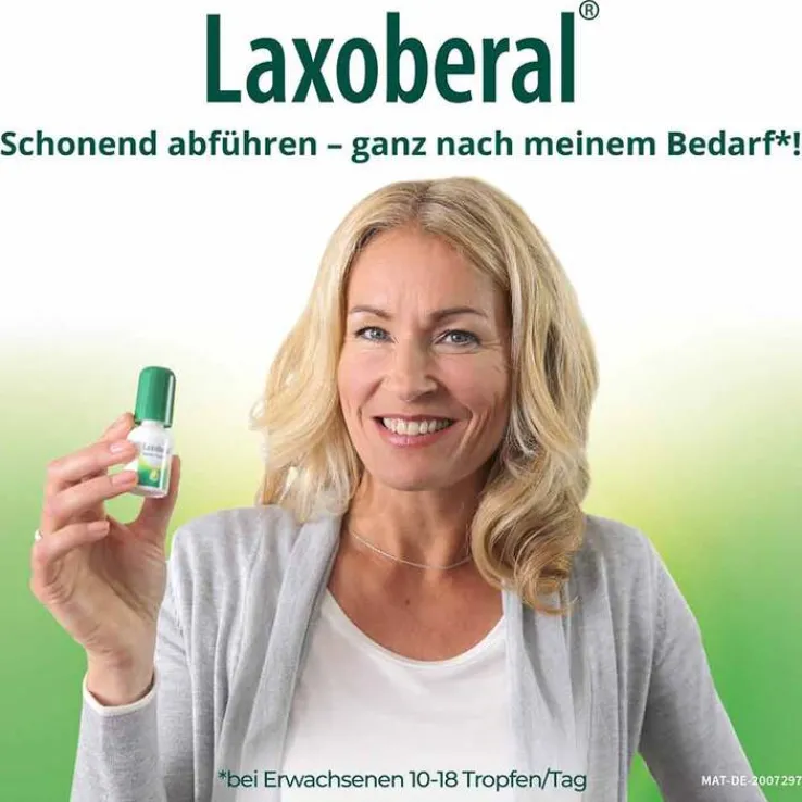 Laxoberal® Abführ-Tropfen Wirkstoff: Natriumpicosulfat. Anwendungsgebiet: Zur Anwendung bei Verstopfung sowie bei Erkrankungen, die eine erleichterte Stuhlentleerung erfordern. Warnhinweis: Wie andere Abführmittel sollte Laxoberal® ohne ärztliche Abklärung der Verstopfungsursache nicht täglich oder über einen längeren Zeitraum eingenommen werden. Enthält Sorbitol und Natriumbenzoat. Apothekenpflichtig. Zu Risiken und Nebenwirkungen lesen Sie die Packungsbeilage und fragen Sie Ihre Ärztin, Ihren Arzt oder in Ihrer Apotheke. A. Nattermann & Cie. GmbH, Brüningstraße 50, 65929 Frankfurt am Main. Stand: Oktober 2024