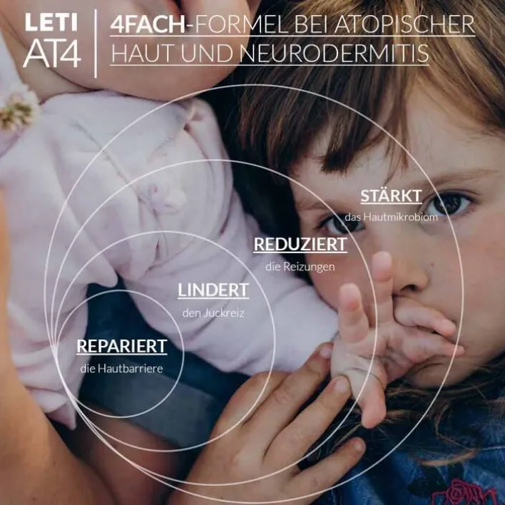 Die Akut-Pflege Leti AT4 Anti-Juckreiz Hydrogel ist der SOS-Helfer bei quälendem Juckreiz. Sie hat einen langanhaltenden Effekt für 6 Stunden nach der Anwendung. Leti AT4 Anti-Juckreiz Hydrogel lindert die 4 Symptome atopischer Haut: