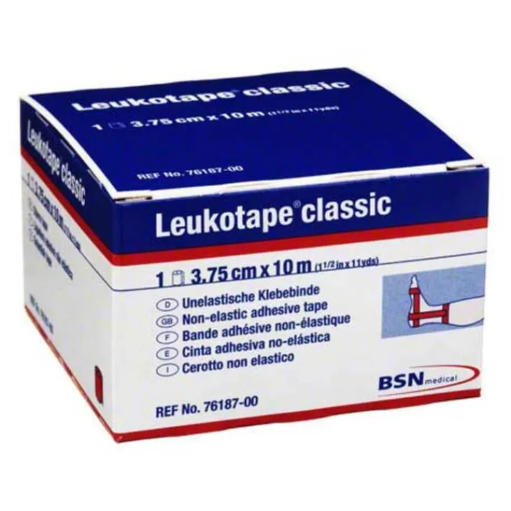 Leukotape® classic ist eine uneleastische Klebebinde für funktionelle Verbände mit hoher Klebkraft.