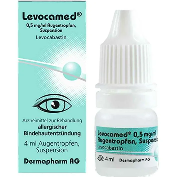 Levocamed® 0,5 mg/ml Augentropfen, Suspension. Wirkstoff: Levocabastin. Anwendungsgebiet: Symptomatische Behandlung allergischer Konjunktivitis einschließlich Conjunctivitis vernalis bei Kindern ab 1 Jahr, Jugendlichen und Erwachsenen. Warnhinweise: Enthält Propylenglykol, Phosphate und Benzalkoniumchlorid. Verfärbung von Kontaktlinsen möglich. Stand: 08/2019. Zu Risiken und Nebenwirkungen lesen Sie die Packungsbeilage und fragen Sie Ihre Ärztin, Ihren Arzt oder in Ihrer Apotheke.