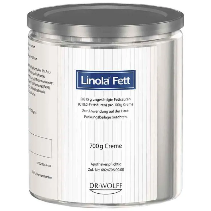 Linola® Fett ist die ideale Fettcreme zur Behandlung sehr trockener, rissiger oder juckender Haut, wie sie z. B. bei Neurodermitis vorkommt. Linola® Fett enthält als Wirkstoff ungesättigte Fettsäuren (u.a. Linolsäure), die für die Barrierefunktion der gesunden Haut notwendig sind.