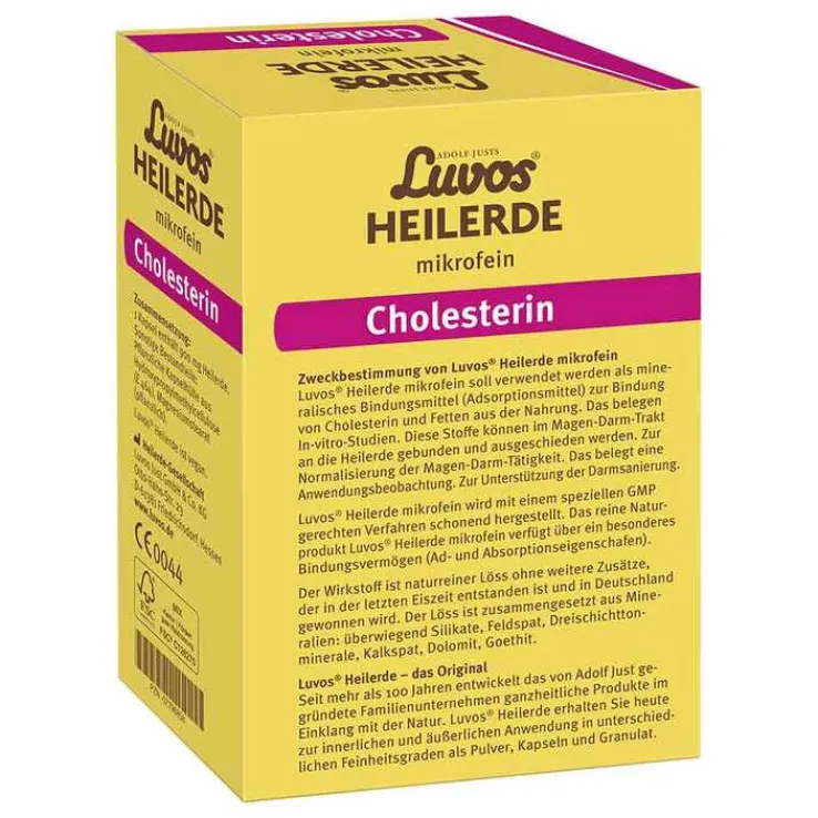 Zusätzlich bindet die naturreine Luvos® Heilerde im Darm Gallensäuren, sodass diese vermehrt ausgeschieden werden. Dies regt die Neubildung von Gallensäuren an, wofür der Körper Cholesterin verbraucht. Damit unterstützt Luvos® Heilerde mikrofein eine herzgesunde Ernährung. Nebenwirkungen sind nicht bekannt.