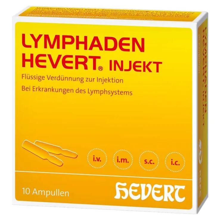 Lymphaden Hevert inject. Die Anwendungsgebiete leiten sich von den homöopathischen Arzneimittelbildern ab. Dazu gehören: Begleittherapie bei chronischen, entzündlich bedingten Lymphdrüsenschwellungen. – Chronische Lymphknotenvergrößerungen können Zeichen unterschiedlicher Erkrankungen sein. Daher ist zur Abklärung der Grunderkrankung vor Anwendung des Arzneimittels, sowie bei akuten Entzündungszeichen (Röte, Hitze, Schwellung, Schmerz und Funktionsstörung) und Fieber oder einer Größenzunahme der Lymphknoten während der Behandlung ein Arzt aufzusuchen. Zu Risiken und Nebenwirkungen lesen Sie die Packungsbeilage und fragen Sie Ihre Ärztin, Ihren Arzt oder in Ihrer Apotheke.