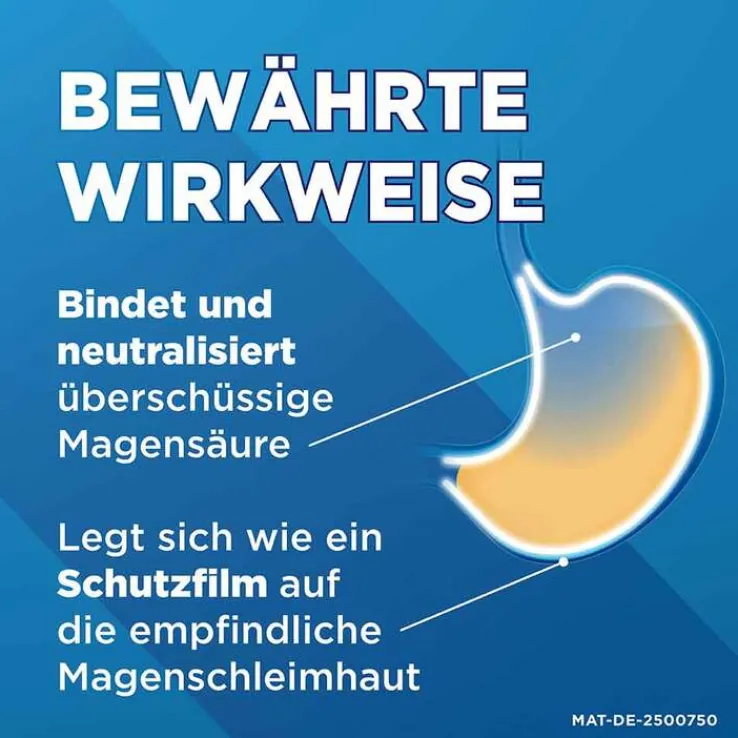 Maaloxan® ist ein sogenanntes Antazidum, das überschüssige Magensäure bindet. Die Wirkstoffe Magnesiumhydroxid und Algeldrat in Maaloxan® sind eine sinnvolle Kombination gegen saures Aufstoßen. Magnesiumhydroxid wirkt als Akuthilfe, es bindet überschüssige Magensäure und lindert so den brennenden Schmerz. Algeldrat ist Ihr aktiver Magenschutz, indem es sich wie ein Schutzfilm auf die empfindliche Schleimhaut legt und die Selbstheilung unterstützt. So hat sich Maaloxan® mit seiner Zweifach-Wirkung bei vielen Sodbrennen-Geplagten bewährt.