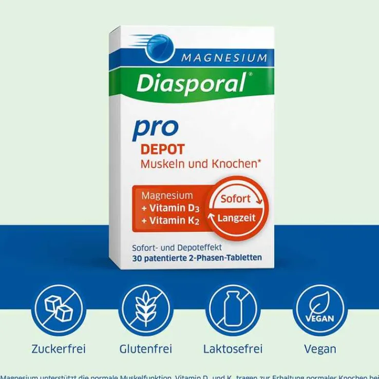 Magnesium Diasporal pro D3 + K2 Depot Muskel + Knochen Tabletten, 30 St