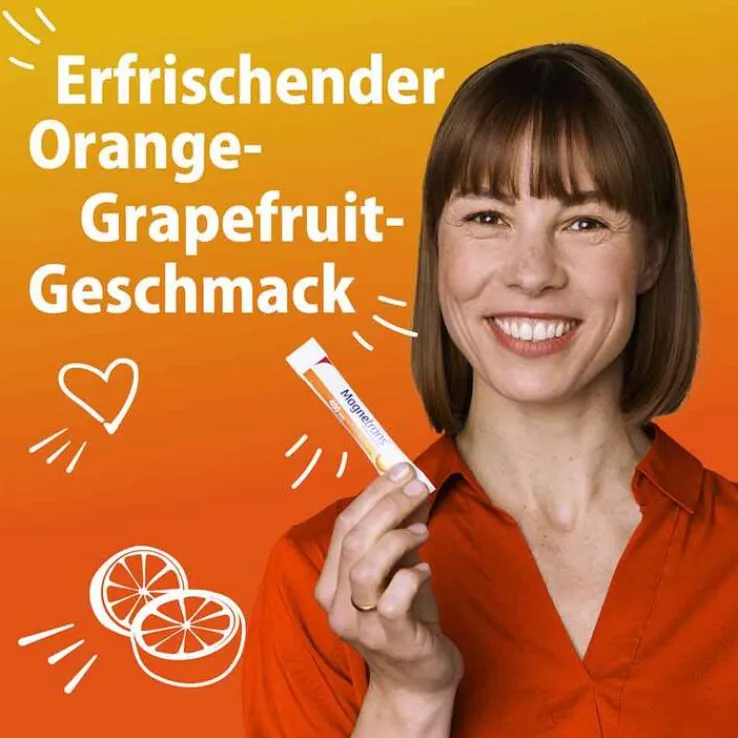 Da der Körper Magnesium nicht selbst herstellt, erfolgt eine Zufuhr über die Nahrung. Eine ausgewogene, abwechslungsreiche Ernährung und eine gesunde Lebensweise sind daher wichtig. Füllen Sie nach dem Sport Ihre körpereigenen Magnesiumdepots auf! Magnetrans® trink-granulat 400 mg versorgt Sie mit 100 % des täglichen Magnesiumbedarfs* in einer Portion. Einfach den Inhalt eines Magnesium Sticks in einem Glas Wasser auflösen, umrühren, fertig. Schmeckt angenehm nach Orange-Grapefruit. Magnetrans® 400 mg trink-granulat ist laktose- und glutenfrei und geeignet für Veganer.