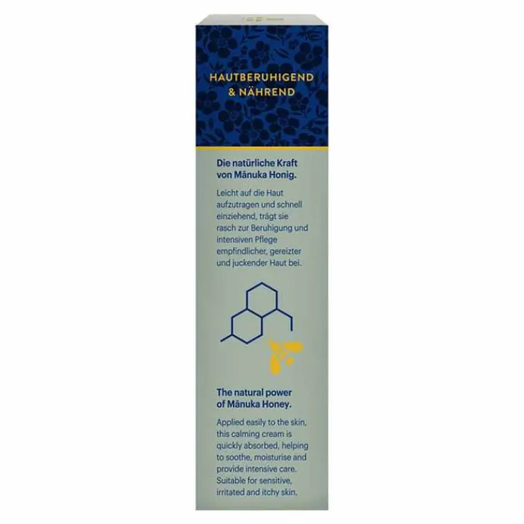 Die Manuka Calming Cream ist eine natürliche Hautpflege mit 10 % hochwertigem, neuseeländischem Manuka Honig, Kamille und Aloe Vera. Leicht auf die Haut aufzutragen und schnell einziehend, trägt sie rasch zur Beruhigung, Regeneration und intensiven Pflege empfindlicher, gereizter und juckender Haut bei.
