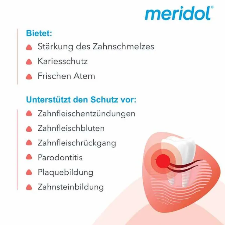 Schützen Sie Ihr Zahnfleisch und stärken Sie Ihre Zähne mit der Meridol Rundumpflege Mundspülung