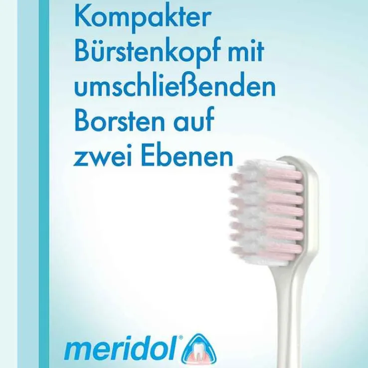 Mit der Meridol Rundumpflege Zahnbürste putzen Sie Ihre empfindlichen Zähne und Ihr Zahnfleisch professionell.
