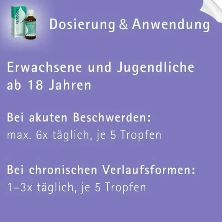 metatendolor Mischung.Die Anwendungsgebiete leiten sich von den homöopathischen Arzneimittelbildern ab. Dazu gehört: Rheumatismus. Hinweis: Bei akuten Zuständen, die z. B. mit Rötung, Schwellung oder Überwärmung von Gelenken einhergehen, sowie andauernden Beschwerden sollte ein Arzt aufgesucht werden. Enthält 51 mg Alkohol (Ethanol) pro 5 Tropfen, entsprechend 50 Vol.-%. Zu Risiken und Nebenwirkungen lesen Sie die Packungsbeilage und fragen Sie Ihre Ärztin, Ihren Arzt oder in Ihrer Apotheke. meta Fackler Arzneimittel GmbH, D-31832 Springe.
