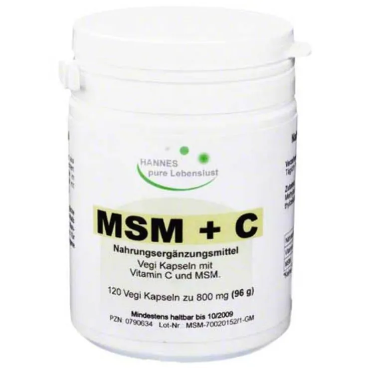 Zusammensetzung je Tagesdosis (2 Kapseln): 1000 mg MSM, 74 mg Vitamin C (=92,5% der empfohlenen Tagesportion nach NKV).
