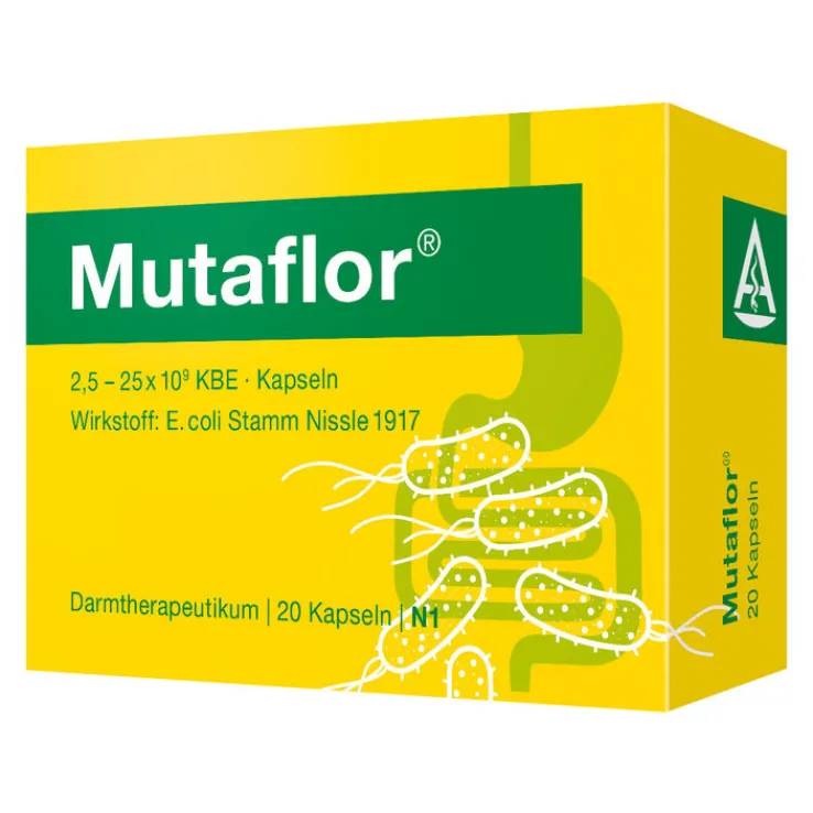 - MUTAFLOR® enthält als Wirkstoff das Bakterium Escherichia coli (E.coli) Stamm Nissle 1917. Dieses Bakterium ist ein natürlicher Darmbesiedler. Es wirkt bei seiner Freisetzung im Dickdarm entzündungshemmend und gegen krankheitserregende Mikroorganismen.