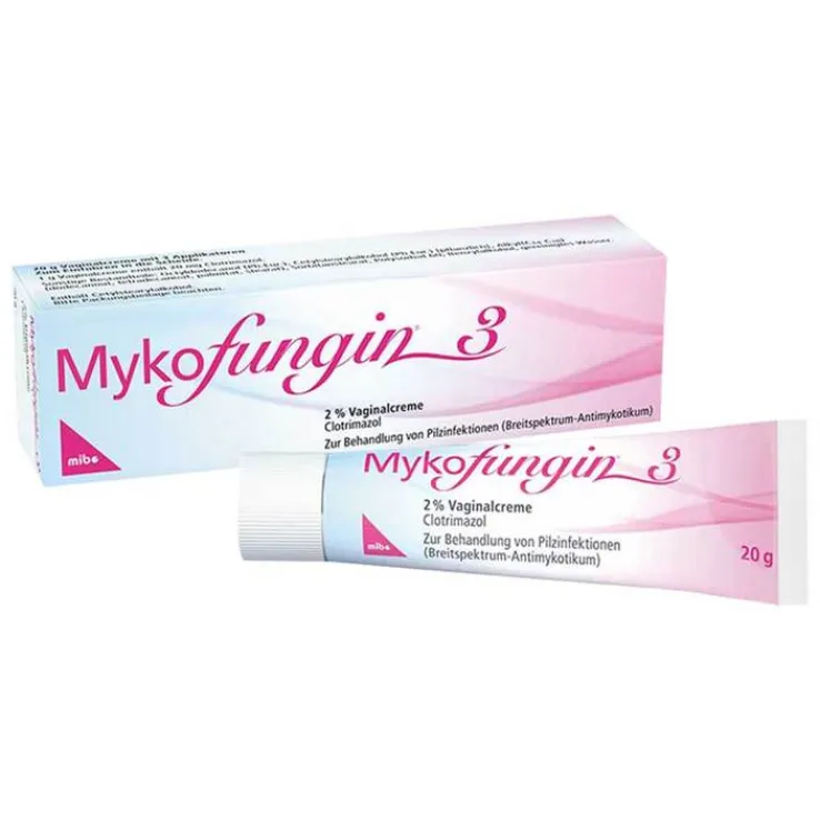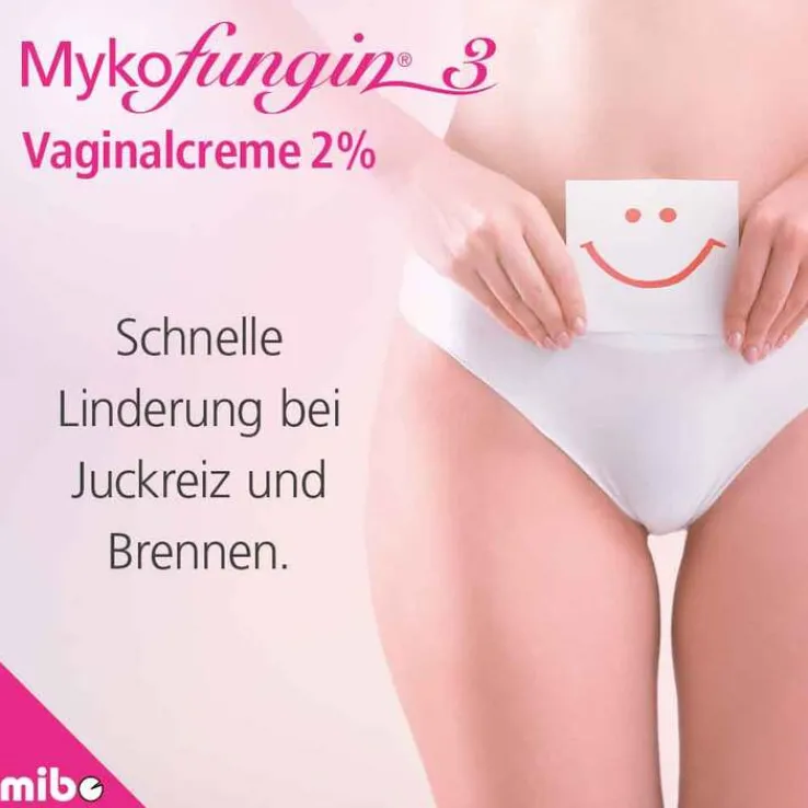 Mykofungin ® 3, 2% Vaginalcreme Wirkstoff: Clotrimazol. Anwendungsgebiet: Entzündungen der Scheide und Ausfluss durch Pilze – meist Candida – sowie Superinfektionen mit Clotrimazol-empfindlichen Bakterien. Warnhinweis: Enthält Cetylstearylalkohol und Benzylalkohol. Zu Risiken und Nebenwirkungen lesen Sie die Packungsbeilage und fragen Sie Ihre Ärztin, Ihren Arzt oder in Ihrer Apotheke. Stand: 05/2019. mibe GmbH Arzneimittel, 06796 Brehna.