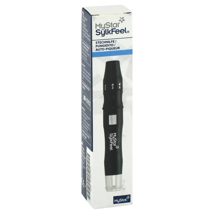 Die MyStar SylkFeel Stechhilfe wird dazu verwendet, mittels einer Lanzette Blutproben für Tests zu gewinnen. Die Stechhilfe beruht auf einem Federmechanismus, der einen automatischen Stechvorgang mithilfe eines federbetriebenen Auslöseknopfs ermöglicht. Die Stechhilfe verfügt über 5 Einstellungen für die Stichtiefe in die Haut.