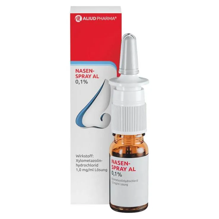 NASENSPRAY AL 0,1% Xylometazolinhydrochlorid 1,0 mg/ml Lösung Zur Anwendung bei Kindern ab 6 Jahren und Erwachsenen. Wirkstoff: Xylometazolinhydrochlorid. Zur Abschwellung der Nasenschleimhaut bei Schnupfen, anfallsweise auftretendem Fließschnupfen (Rhinitis vasomotorica), allergischem Schnupfen (Rhinitis allergica). Zur Erleichterung des Sekretabflusses bei Entzündung der Nasennebenhöhlen sowie bei Katarrh des Tubenmittelohres in Verbindung mit Schnupfen. Hinweis: Enthält Benzalkoniumchlorid. Sollte nicht länger als 7 Tage angewendet werden, es sei denn auf ärztliche Anordnung. Zu Risiken und Nebenwirkungen lesen Sie die Packungsbeilage und fragen Sie Ihre Ärztin, Ihren Arzt oder in Ihrer Apotheke. ALIUD PHARMA GmbH, Postfach 1380, 89146 Laichingen Stand: März 2021