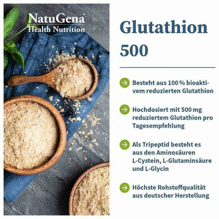 - Glutathion 500 besteht aus 100 % bioaktivem reduzierten Glutathion