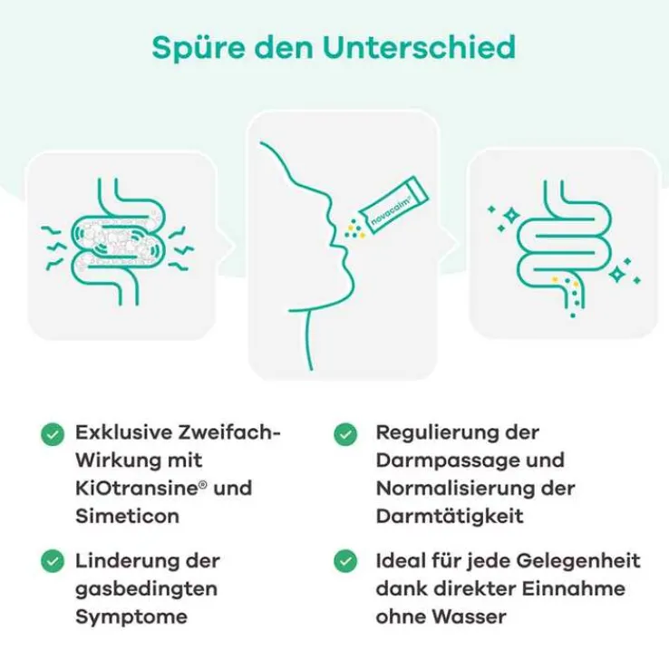 novacalm® ist für die symptomatische Behandlung von gasbedingten Magen-Darm-Beschwerden bestimmt und wird angewendet zur: