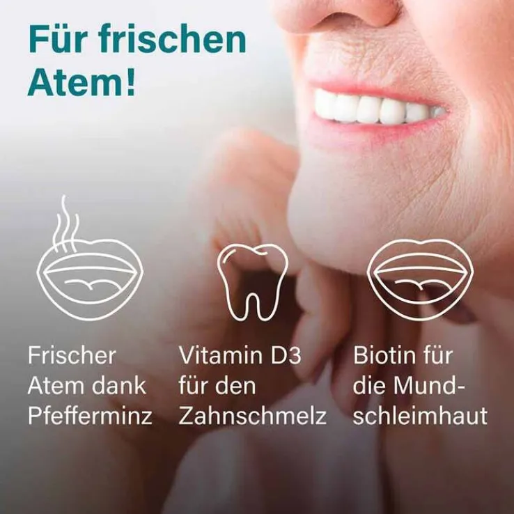 Nupure probadent forte enthält 5 Milliarden KBE (koloniebildende Einheiten) aus drei ausgewählten Bakterienstämmen, ergänzt durch Biotin und Vitamin D3. Der frische Pfefferminzgeschmack sorgt für einen angenehmen Start in den Tag – ganz ohne Zucker.