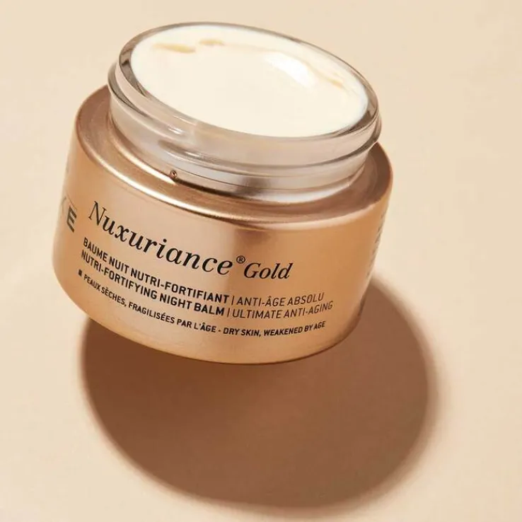 Lernen Sie Nuxuriance Gold kennen, die Premium-Gesichtspflege speziell für trockene, altersbedingt beanspruchte Haut. Die Anti-Aging Intensivpflege für die Nacht mit dem wertvollen Oleoactif des Fackelingwers regt die Mikrozirkulation der Haut an und verleiht Ihrem Teint dadurch mehr Leuchtkraft. Durch einen nährenden, aufbauenden Komplex und die bifloralen Zellen aus Safran und Bougainvillea wird Ihre Haut zusätzlich geglättet und optimal genährt. Die luxuriöse, verwöhnende Textur und der sinnliche Duft sorgen für echte Wohlfühlmomente.
