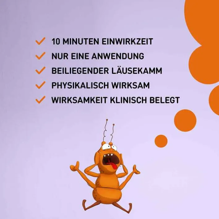 Die Wirkung des Läusemittels basiert auf dem einzigartigen 2-Stufen-Dimeticon: Mit Hilfe von zwei Silikonölen, die das Atemsystem der Kopfläuse, Larven und Eier verschließen, werden die Parasiten effektiv abgetötet. Durch dieses physikalische Wirkprinzip wird der menschliche Organismus nicht belastet und es besteht kein erhöhtes Risiko für allergische Reaktionen.