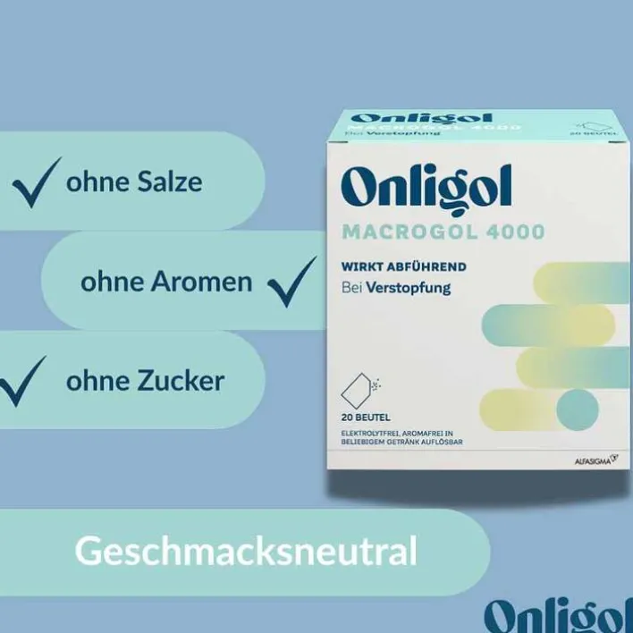 Die gute Nachricht: Sie können gezielt gegensteuern. Eine ausgewogene Ernährung mit ausreichend Ballaststoffen, tägliche Bewegung und viel Flüssigkeit helfen dem Darm wieder auf die Sprünge. Reicht das nicht aus, kann Onligol Macrogol 4000 unterstützen.