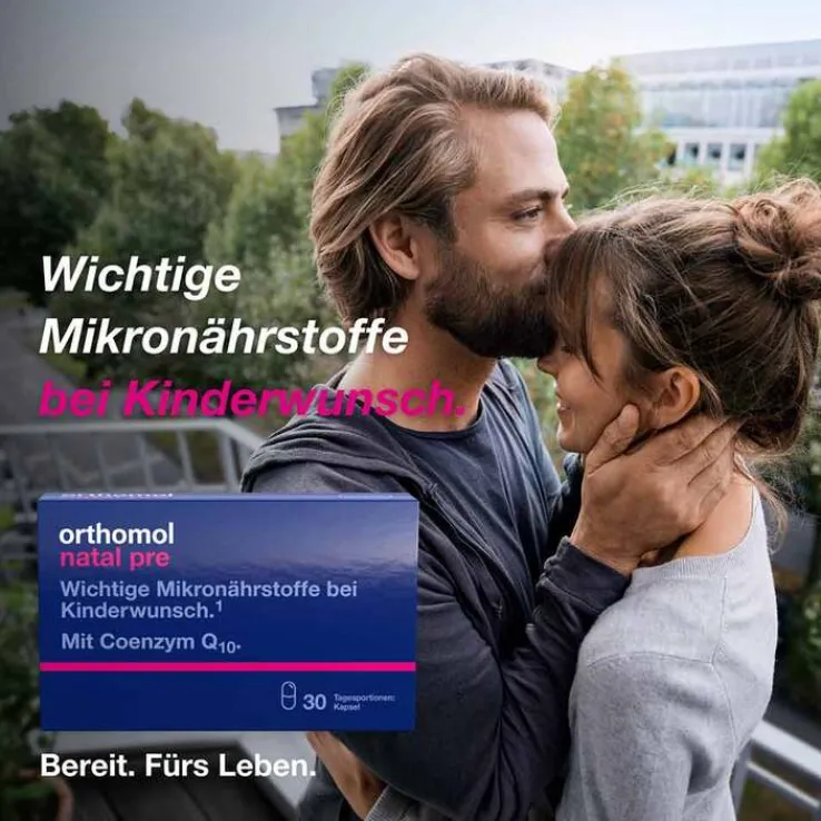 Orthomol Natal pre ist ein Nahrungsergänzungsmittel. Wichtige Mikronährstoffe bei Kinderwunsch ¹ ² ³ ⁴. Mit Zink zur Unterstützung der normalen Fruchtbarkeit und Fortpflanzung. Es enthält eine Kombination aus Folsäure und Quatrefolic ⁵, das eine aktive Form der Folsäure ist und dem Körper ohne vorherige Umwandlung zur Verfügung steht. Orthomol Natal pre enthält auch Coenzym Q10.
