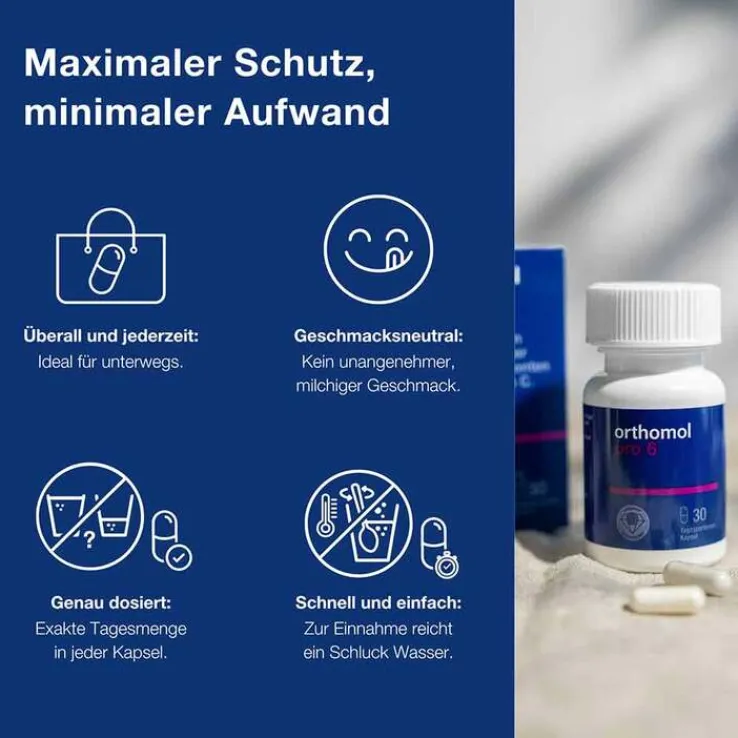 Orthomol Pro 6 ist ein Nahrungsergänzungsmittel mit einer Kombination ausgewählter Darmsymbionten und Vitamin C. Es eignet sich z.B. zur Unterstützung des Immunsystems und des Energiestoffwechsels*.