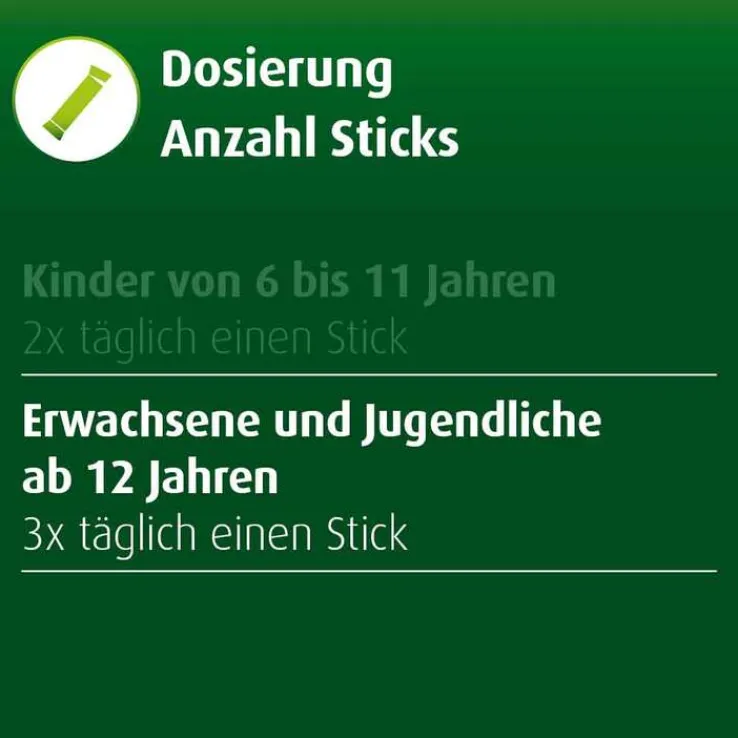 Die Behandlungsdauer richtet sich jeweils nach der Art und Schwere des Krankheitsbildes und sie sollte in der Regel 1 Woche betragen. Wenn die Beschwerden jedoch länger als 1 Woche anhalten, sollte medizinischer Rat eingeholt werden.