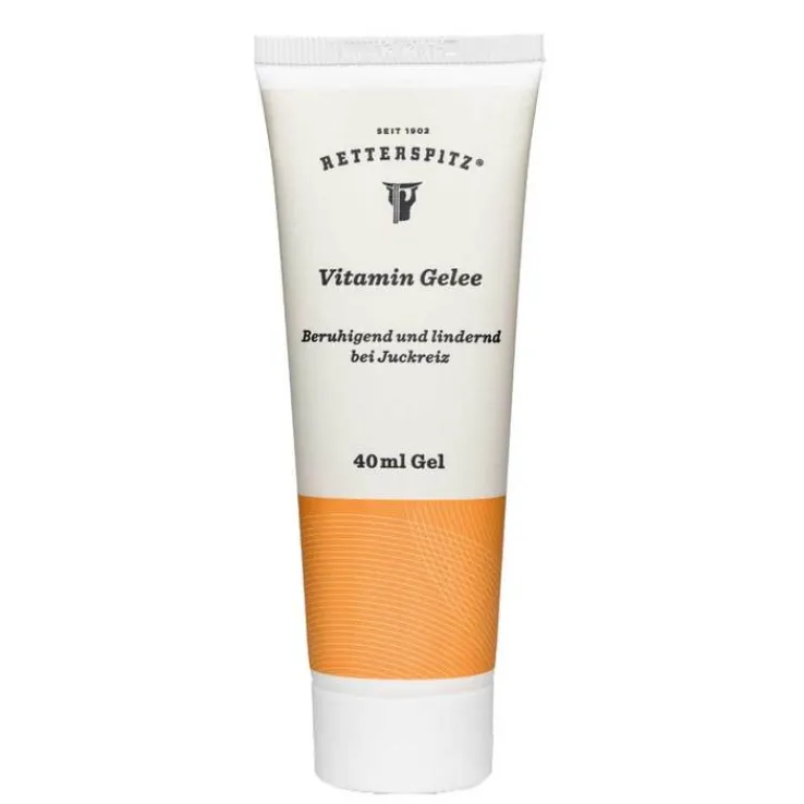 Manchmal muss es etwas anderes sein als die übliche Pflege. Wenn die Haut juckt, spannt oder trocken ist, können Cremes und Lotionen die sensiblen Stellen zusätzlich reizen. Retterspitz Vitamin Gelee beruhigt, kühlt und pflegt, wenn sich die Haut in einem Ausnahmezustand befindet, wie zum Beispiel bei Mückenstichen. Vitamin E bindet freie Radikale und regeneriert die Schutzbarriere in der Haut. Gleichzeitig regelt es den Feuchtigkeitshaushalt. Gestresste, angegriffene und trockene Haut kann sich so schneller erholen. Die Inhaltsstoffe Allantoin und Thymol lindern Entzündungen und eignen sich auch besonders für strapazierte Haut, die juckt.