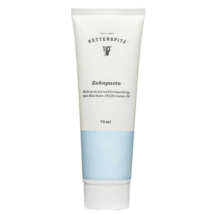 Wie eine frische Brise! Retterspitz Zahnpasta erfrischt allein durch wertvolles ätherisches Mitcham-Pfefferminzöl. Das in der Zahnpasta enthaltene Meersalz reinigt und pflegt die Zähne und das Zahnfleisch sanft und andauernd. Schon eine geringe Menge genügt!