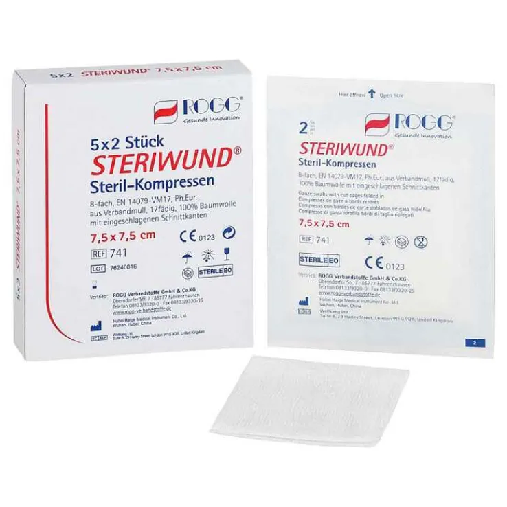 Rogg Steriwund Kompresse 7,5×7,5, 5X2 St