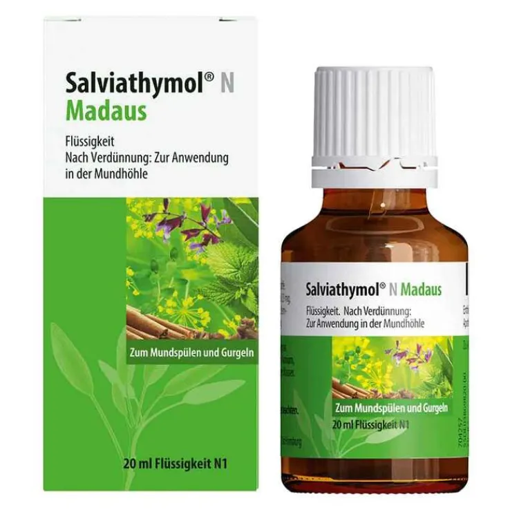 - Für ein Frischegefühl: Die rein pflanzlichen Salviathymol® N MADAUS Tropfen zum Spülen und Gurgeln besitzen einen erfrischenden Geschmack und können auch gemeinsam mit Zahnseide oder Munddusche verwendet werden.