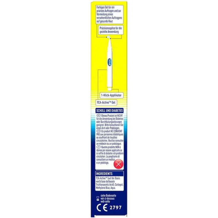 Dank dem einzigartigen Wirkstoff TCA-Active ist die Behandlung mit dem Scholl Warzen & Dornwarzen Behandlungsstift mit einer Dauer von nur 4 Tagen schneller als herkömmliche Behandlungen auf Basis von Salizylsäure. Die ersten Ergebnisse werden bereits nach 1 Woche sichtbar.