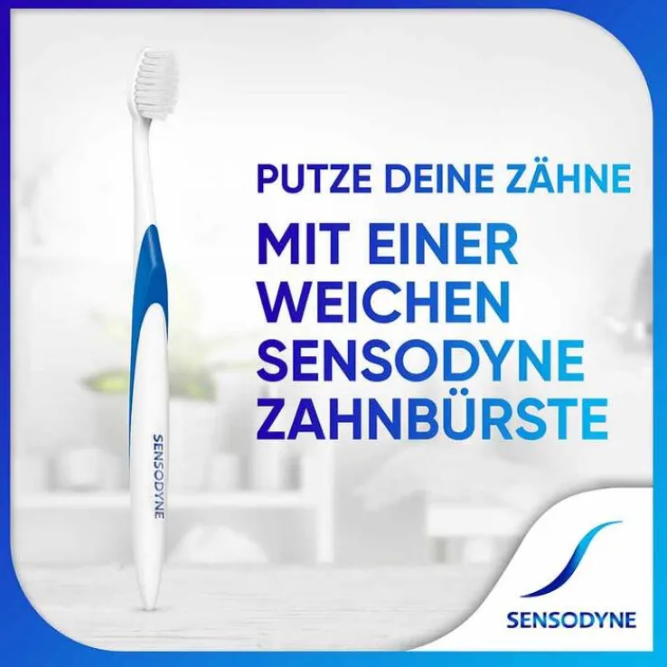 Empfehlung: Zweimal tägliches Zähneputzen mit der Sensodyne Zahnbürste und Zahnpasta.