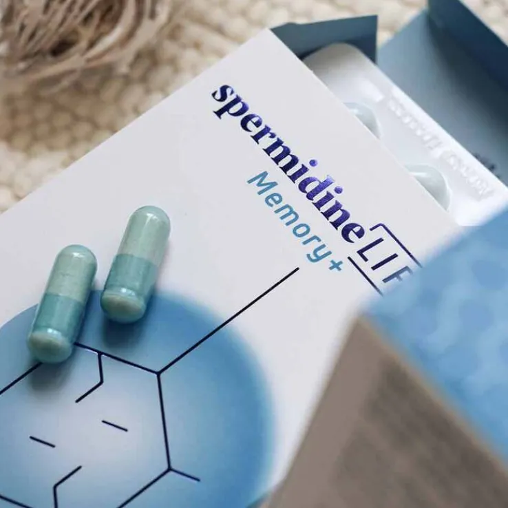 - Nahrungsergänzungsmittel aus Weizenkeimextrakt mit hohem Spermidingehalt, Brahmiextrakt, Safranextrakt, Eisen, Zink und Vitamin B1