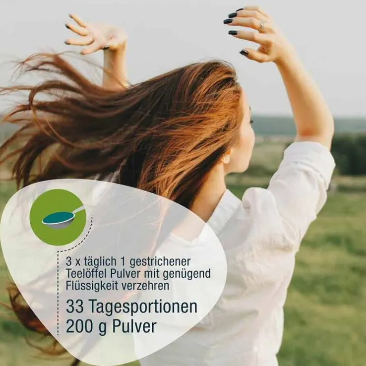 3 x täglich 1 gestrichener Messlöffel (1 gestrichener Messlöffel = 2 g) mit genügend Flüssigkeit verzehren.