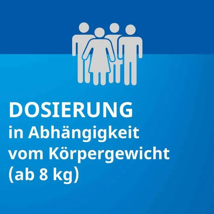 Schütteln Sie die Flasche vor dem Gebrauch kräftig! Zur genauen Dosierung enthält die Packung eine Applikationsspritze als Verabreichungshilfe (mit Markierungen bei 1,25 ml/8–9 kg, 2,50 ml/10–15 kg, 3,75 ml/16–19 kg und 5 ml/20–39 kg).