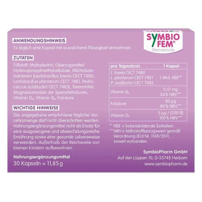 Symbiofem Menopause Kapseln, 30 St> Wechseljahre