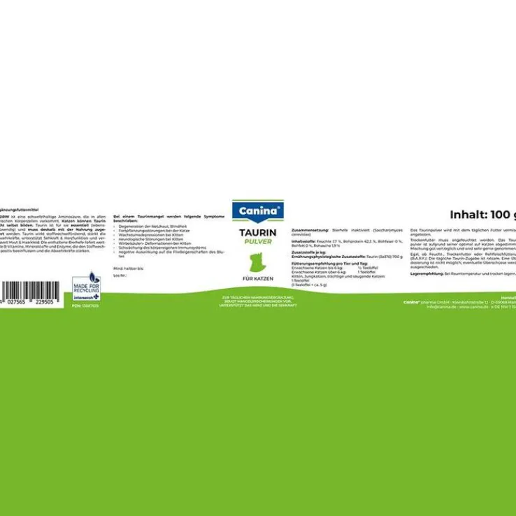 Kategorien: Aufbau & Leistung, Katzen, Nährstoffe, Nahrungsergänzung, Taurin, Tierapotheke Schlagwort: Canina Marke: Canina