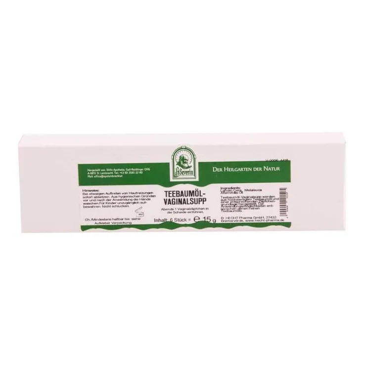 Teebaumöl Vaginalsupp enthält Teebaumöl in einer Zäpfchengrundlage.