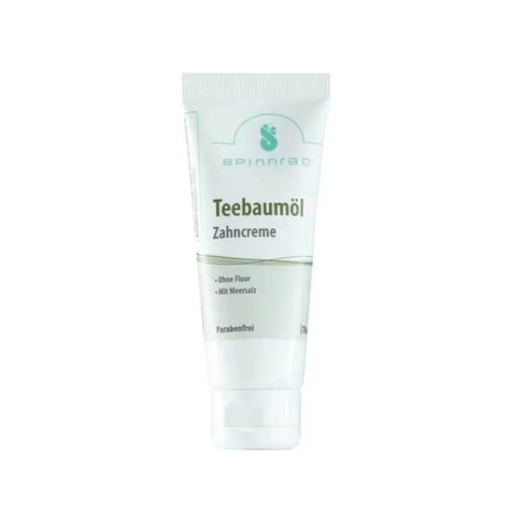 Die Teebaumöl Zahncreme mit den ätherischen Öle Teebaum, Fenchel, Minze und Myrrhe spendet langanhaltend frischen Atem, schützt und pflegt Zähne und Zahnfleisch. Meersalz wirkt beruhigend auf die Schleimhäute. Die Zahncreme enthält kein Fluor.