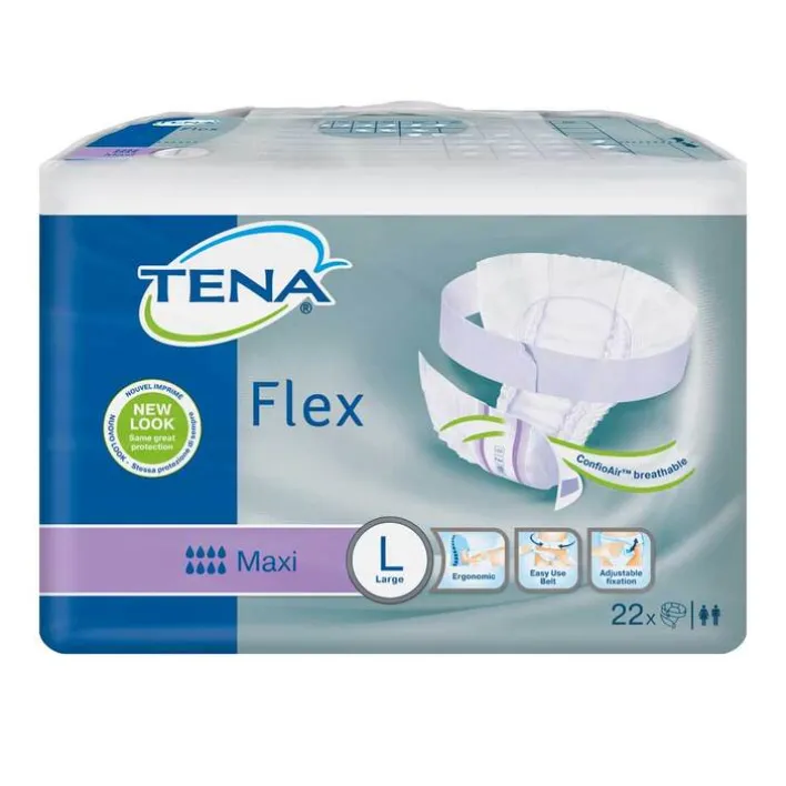 TENA Flex Maxi mit ConfioAir™ ist vollständig atmungsaktiv und zum Schutz der Haut dermatologisch getestet. Das integrierte ComfiStretch-Gurteinsatz mit breiten, leicht zu verschließenden, verstellbaren Befestigungshaken für einfaches und ergonomisches Wechseln. Der hochabsorbierende, zweifache Saugkern bietet hohen Schutz bei Tag und Nacht. Das atmungsaktive Textilmaterial hat eine angenehme, weiche und diskrete Passform.