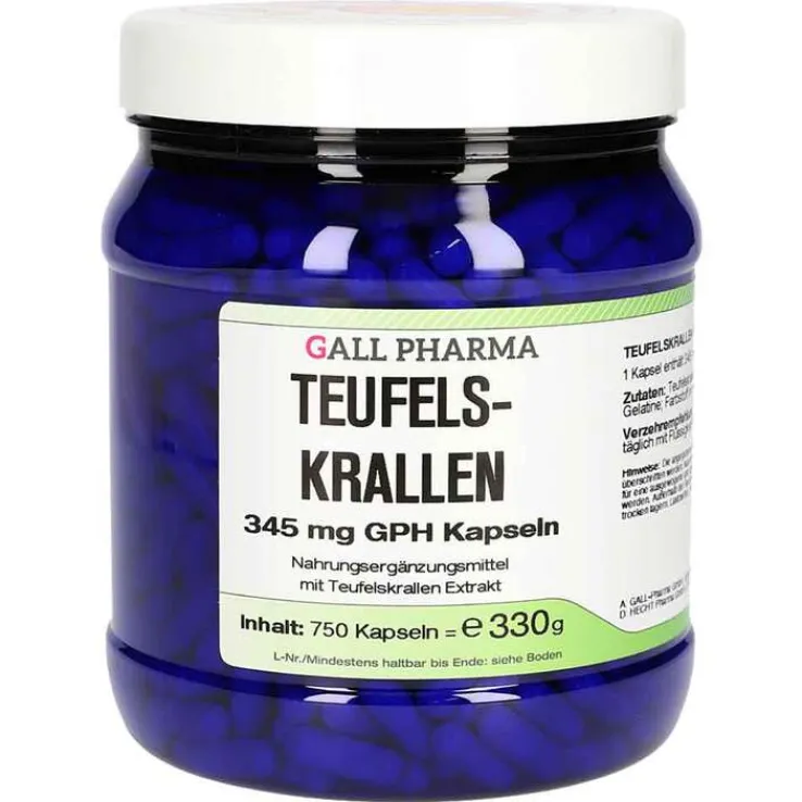 1 Kapsel enthält 345 mg Teufelskrallen Extrakt entsprechend 17,25 mg Harpagoside.